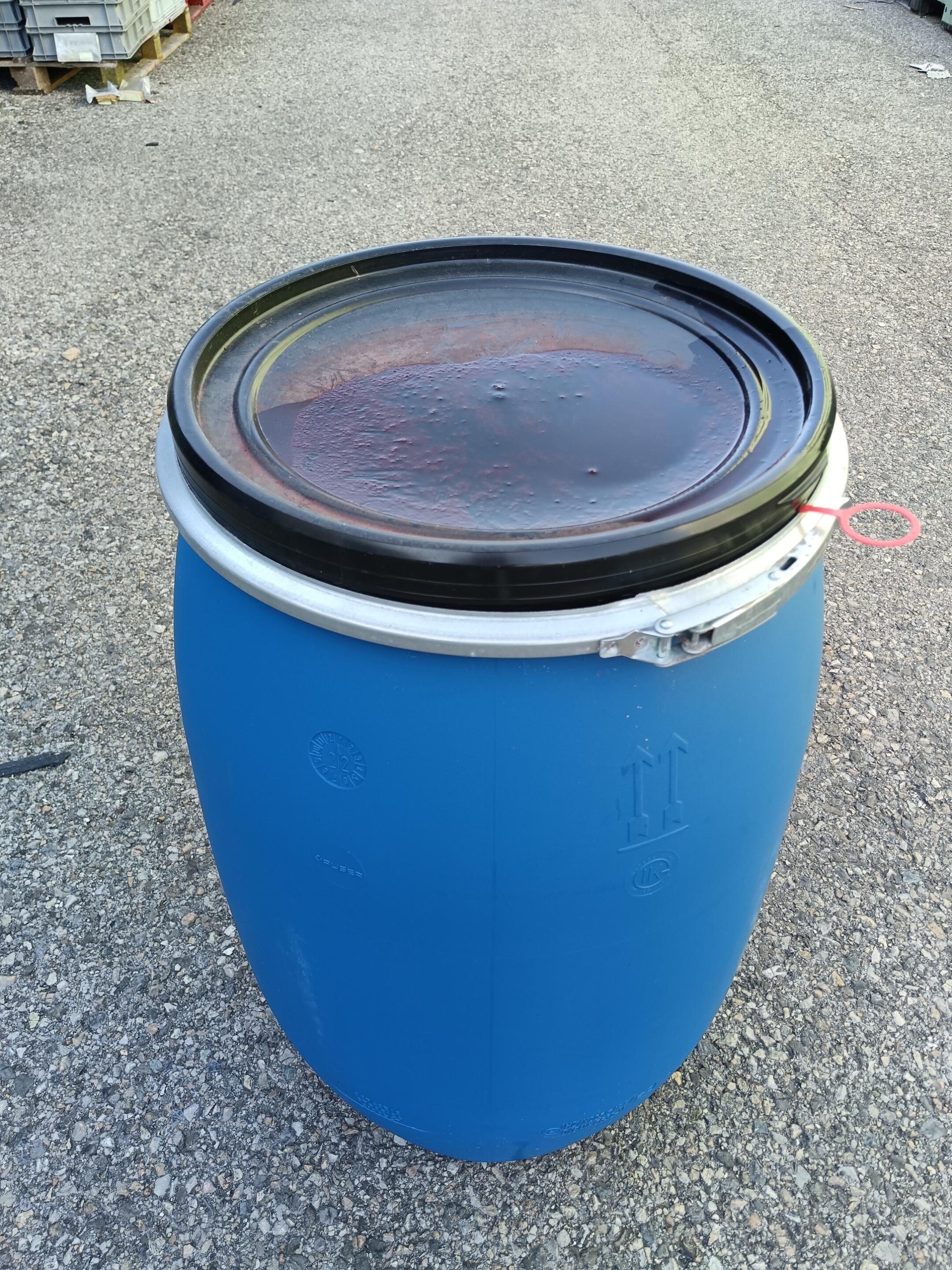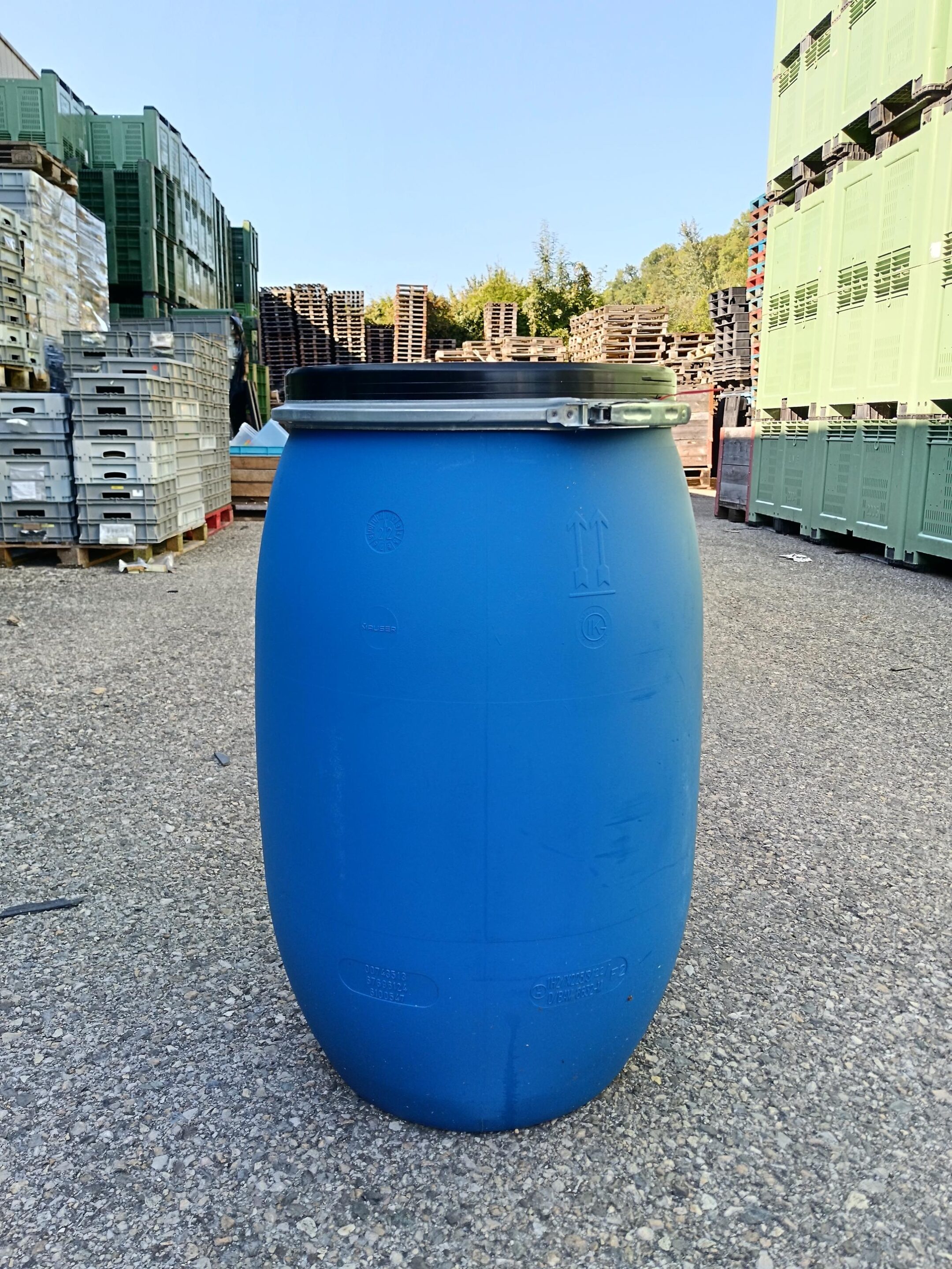 Ce bidon bleu d’occasion, d’une capacité de 153 litres, est équipé d’un couvercle noir robuste avec cerclage métallique de fermeture assurant une étanchéité fiable. Avec sa hauteur de 75 cm, il offre un volume généreux pour le stockage ou le transport sécurisé de liquides, granulés ou autres matières.