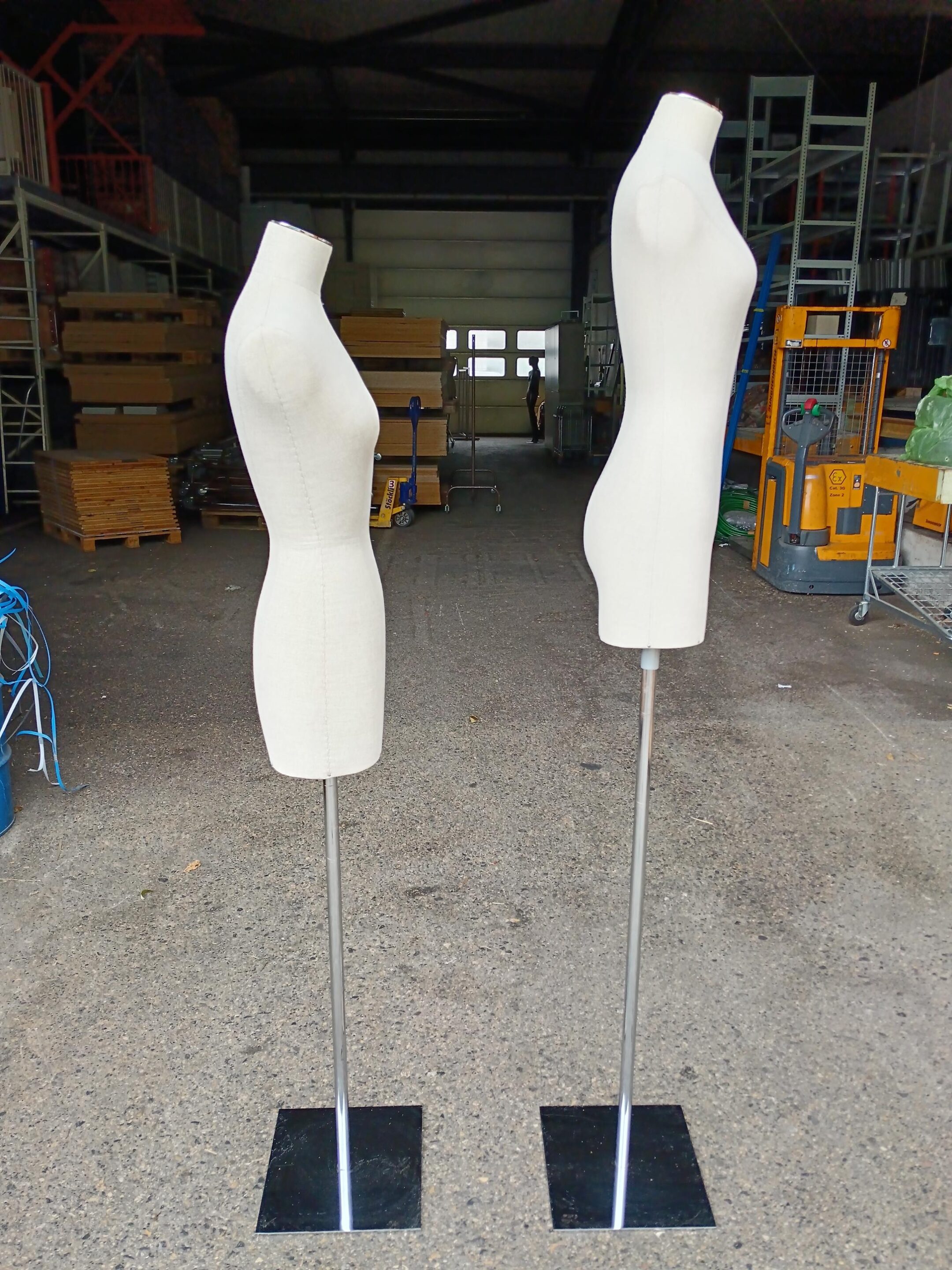 Avec une hauteur de buste de 81 cm et une largeur de 35 cm, ce modèle présente une silhouette féminine réaliste, parfaite pour exposer robes, chemisiers, vestes ou accessoires. Sa finition en toile beige lui confère une touche élégante et intemporelle.