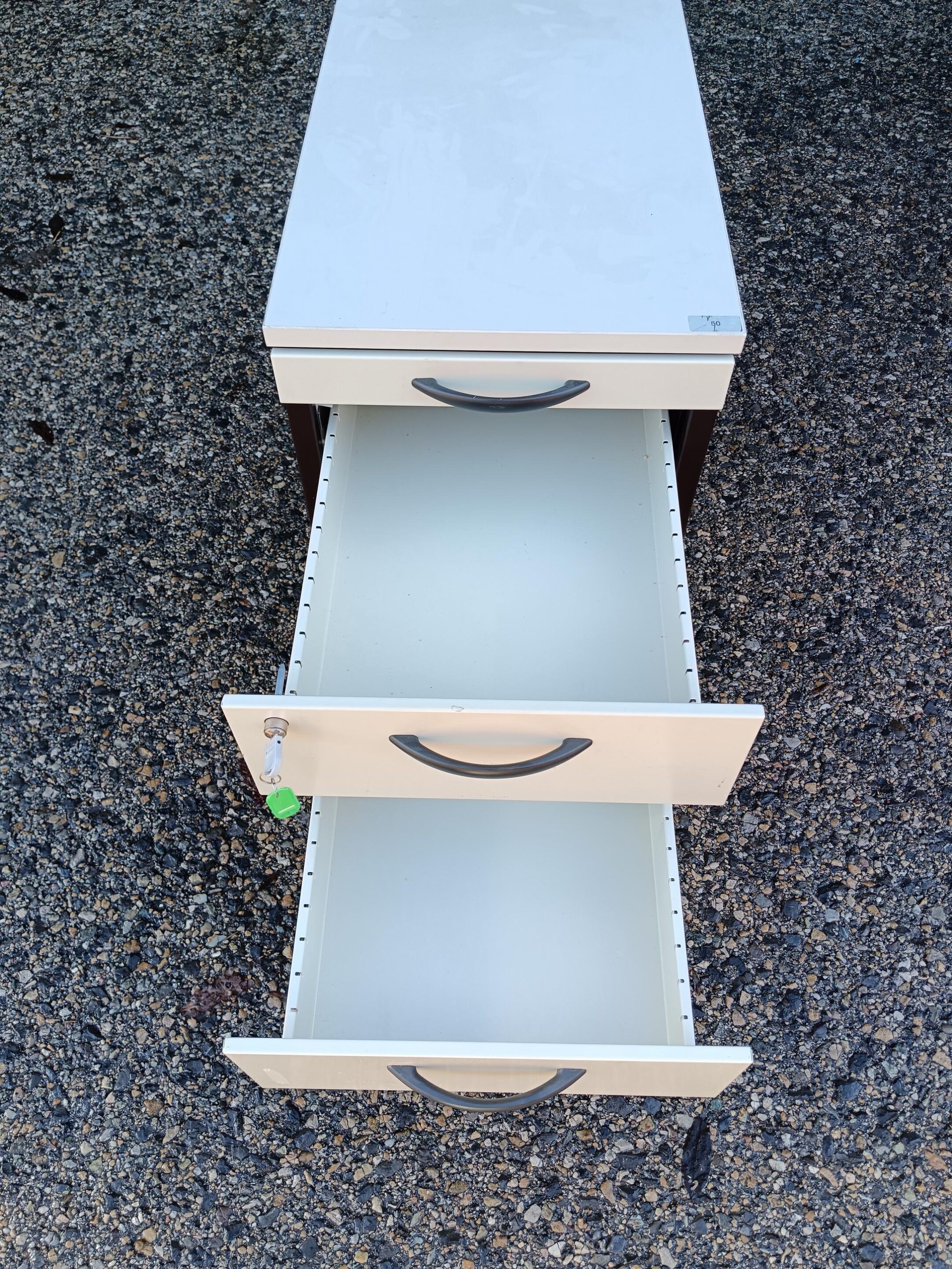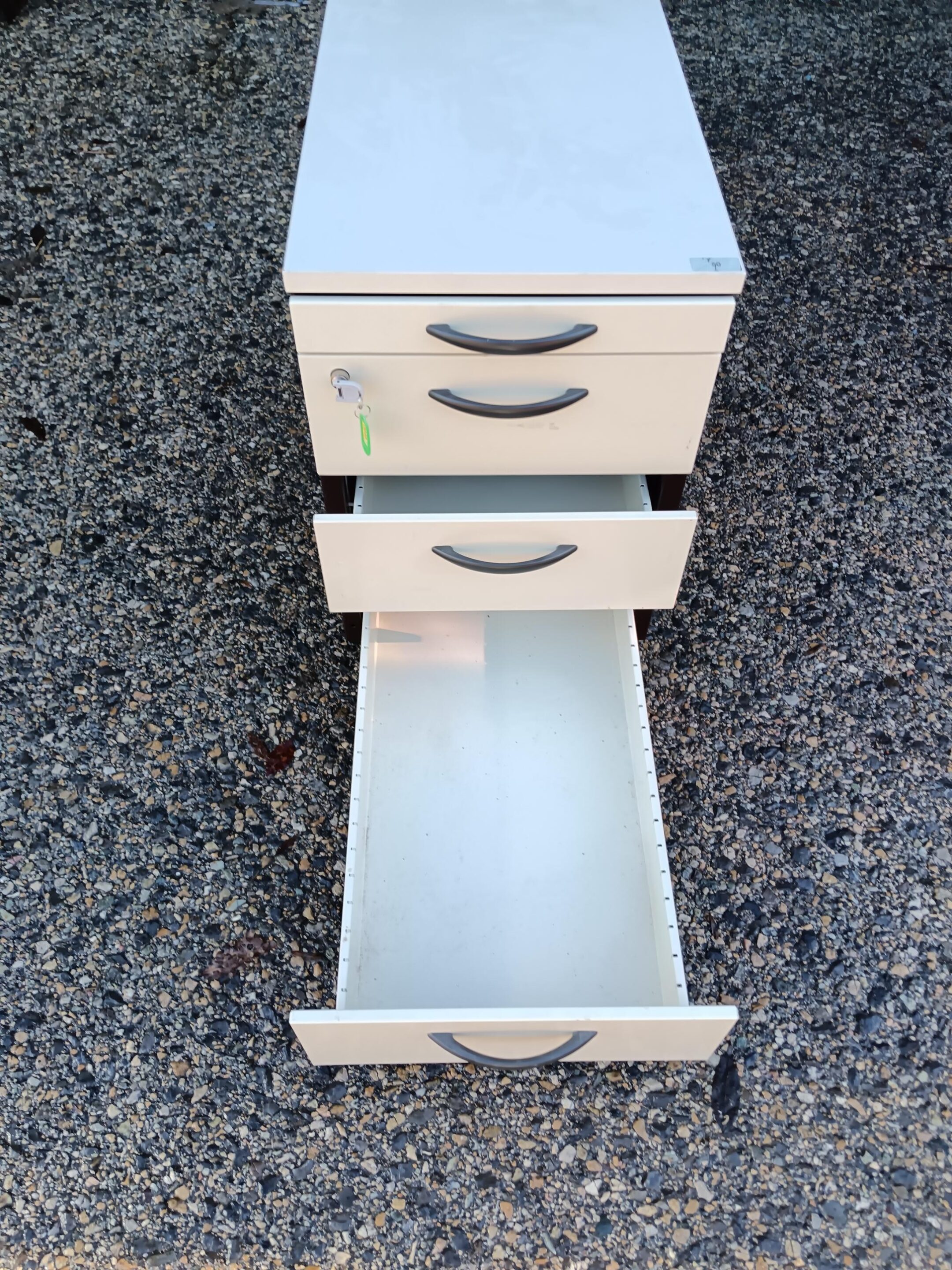Caisson de bureau blanc et marron – 4 tiroirs avec poignée et serrure – Occasion
