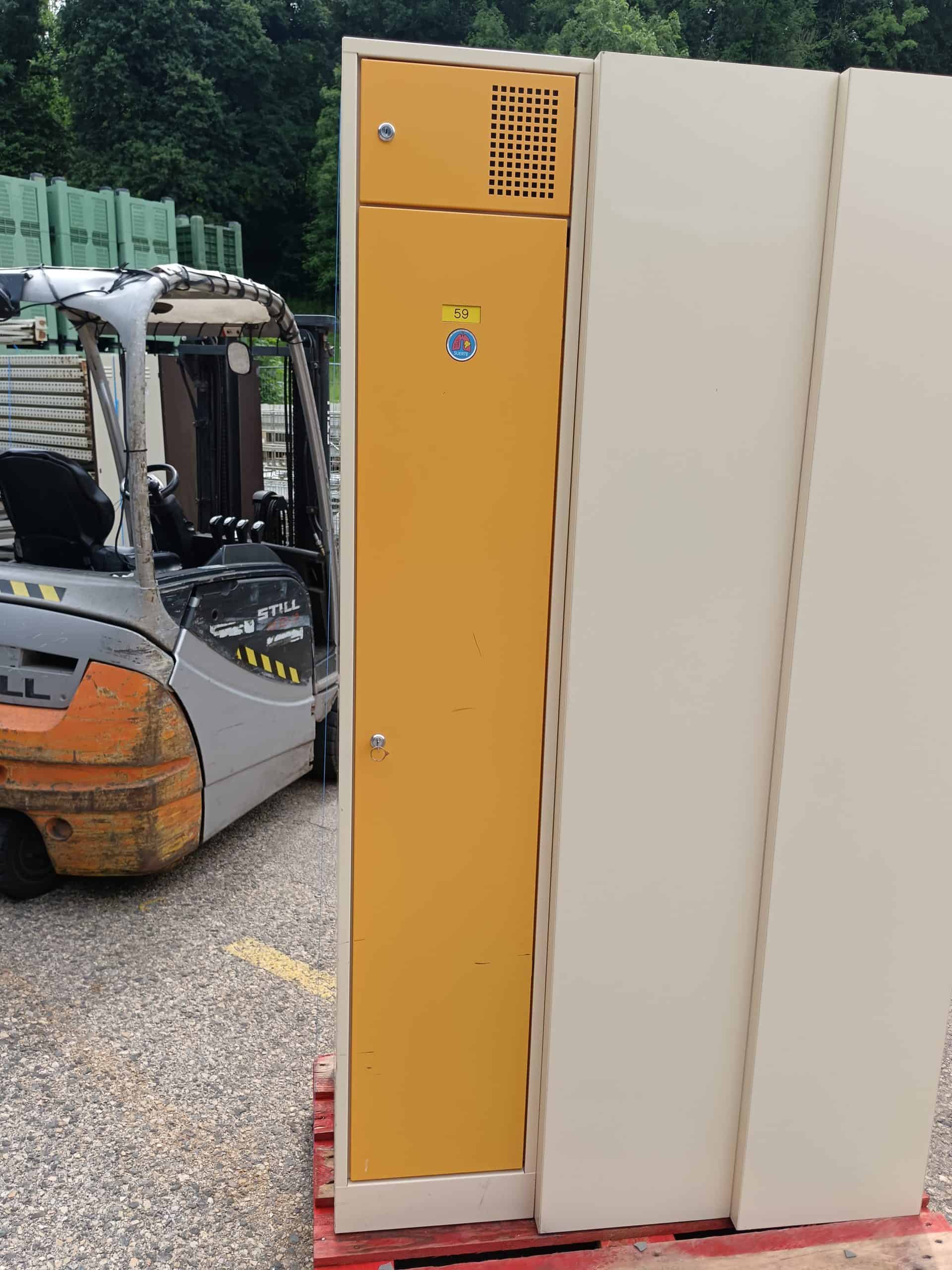 Casier vestiaire jaune/blanc 1 porte – Occasion, H200 x L50 x P37 cm