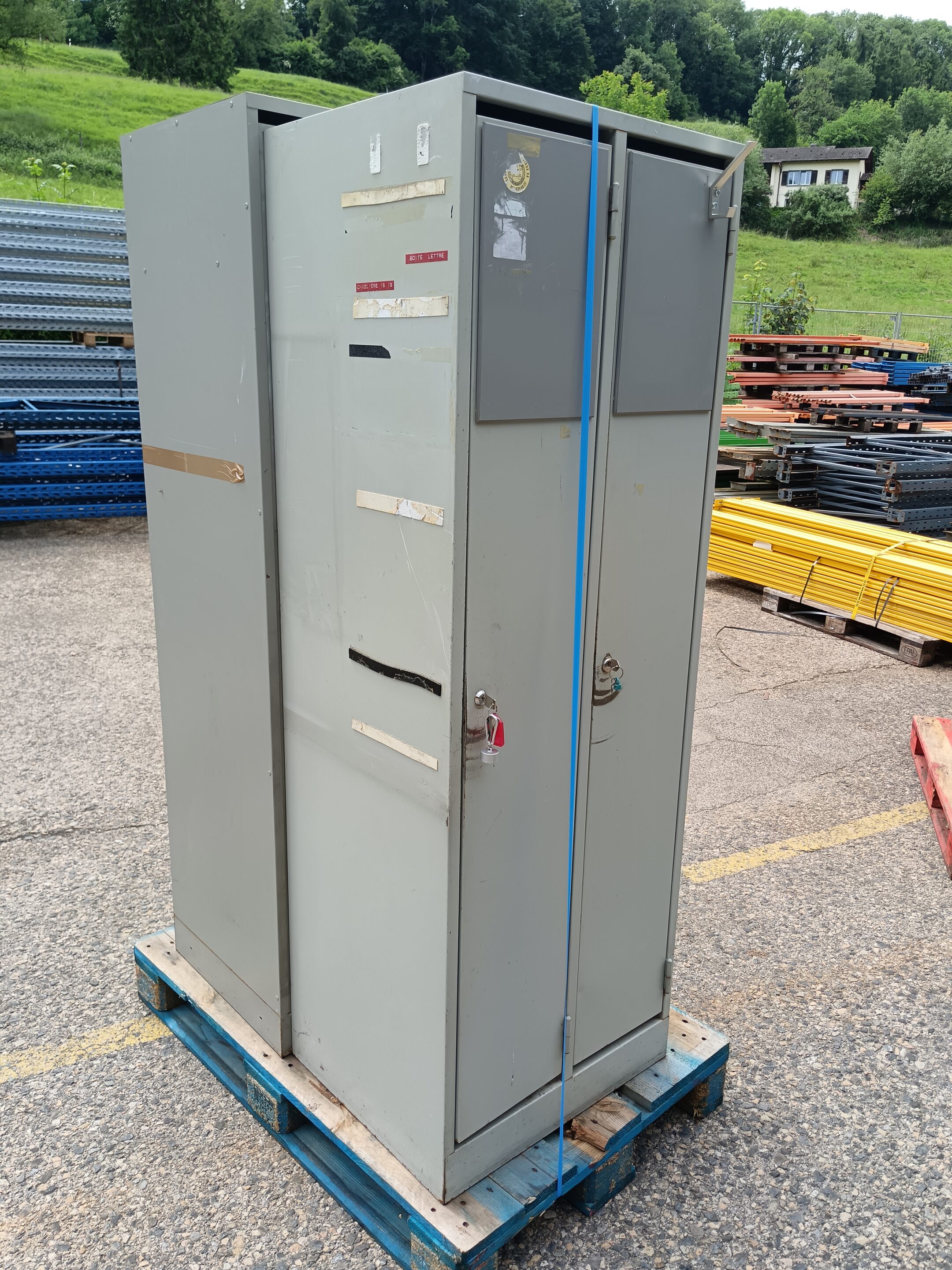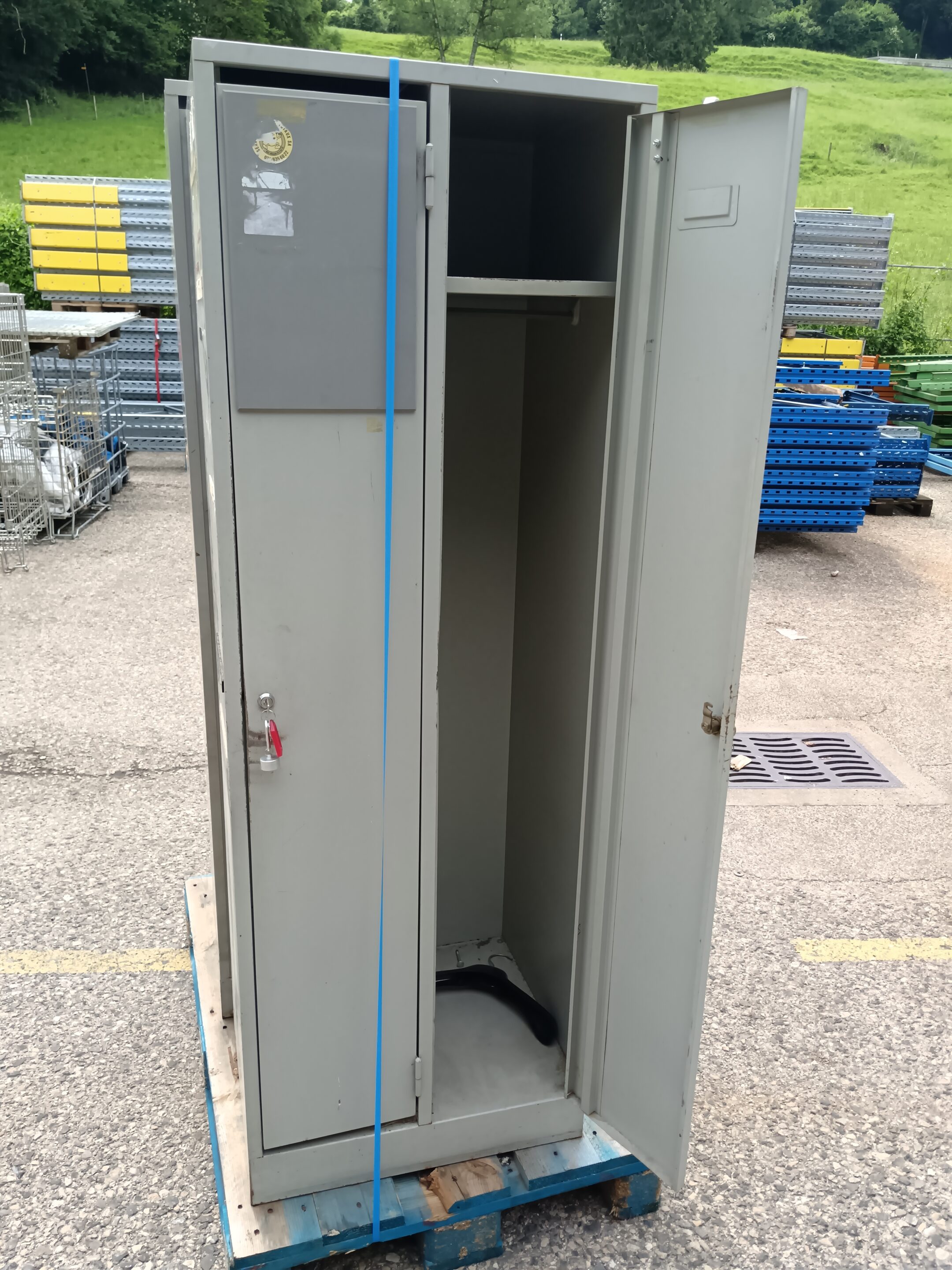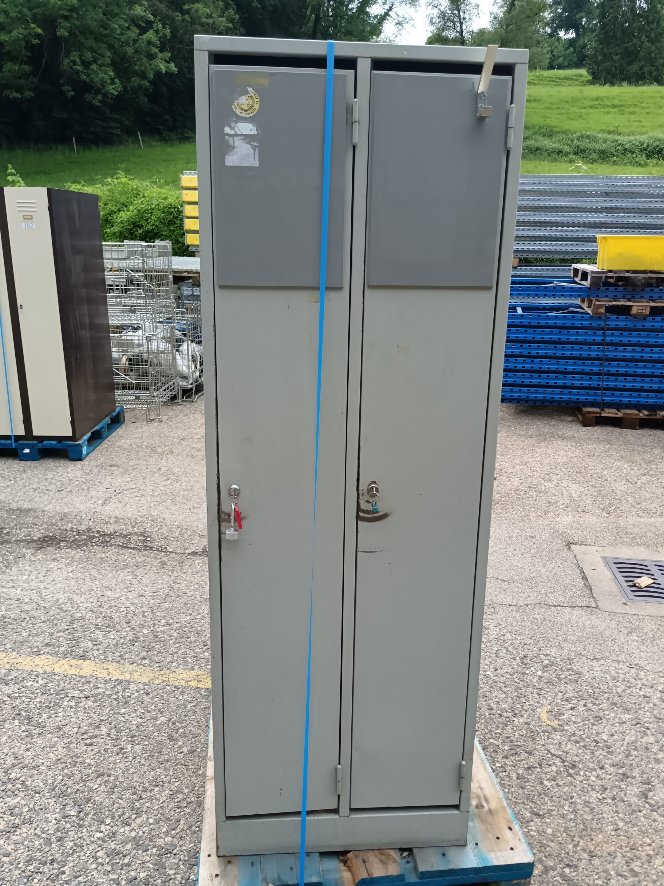 Casier vestiaire métallique gris 2 portes – Occasion, H180 x L62 x P50 cm