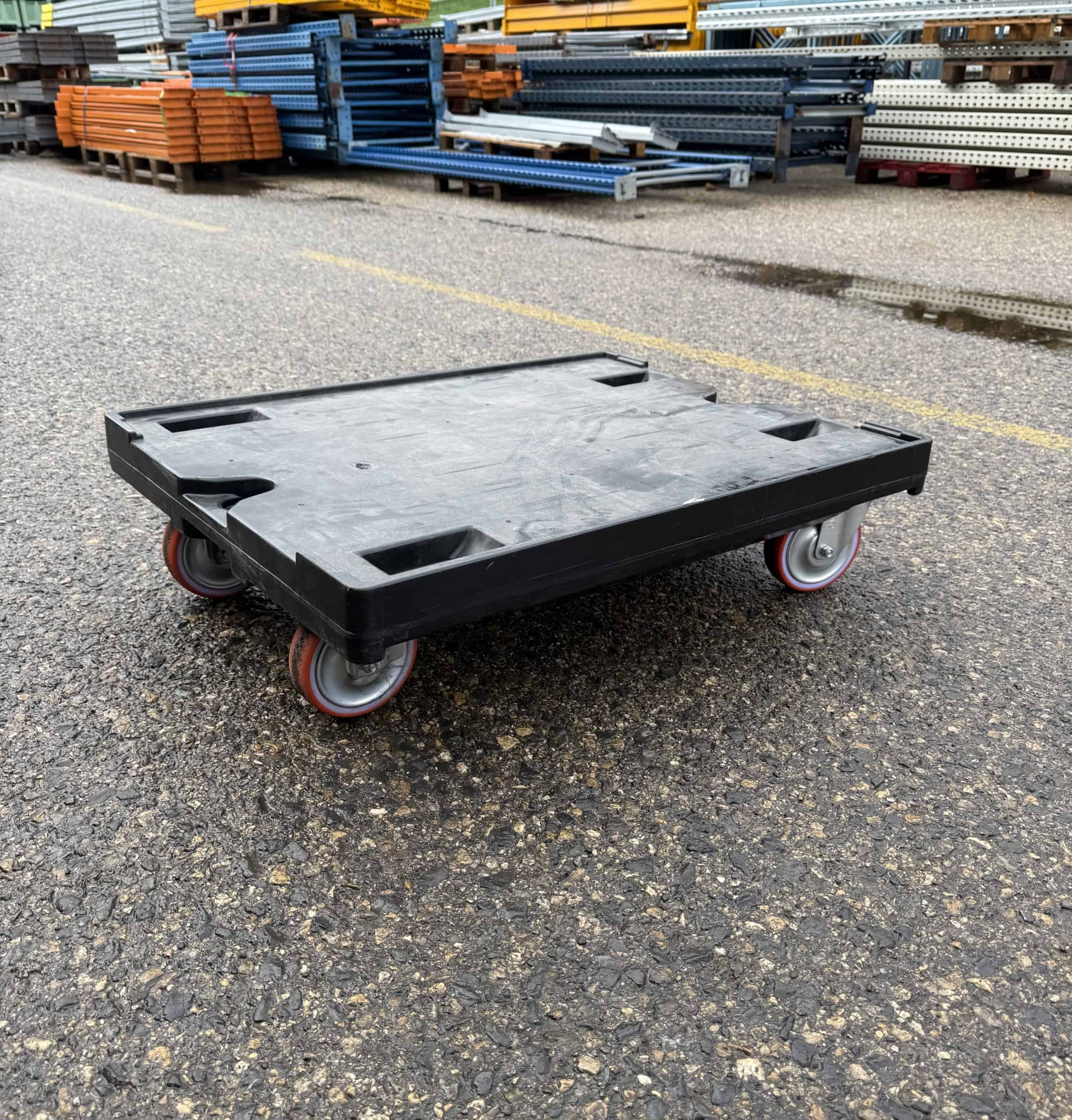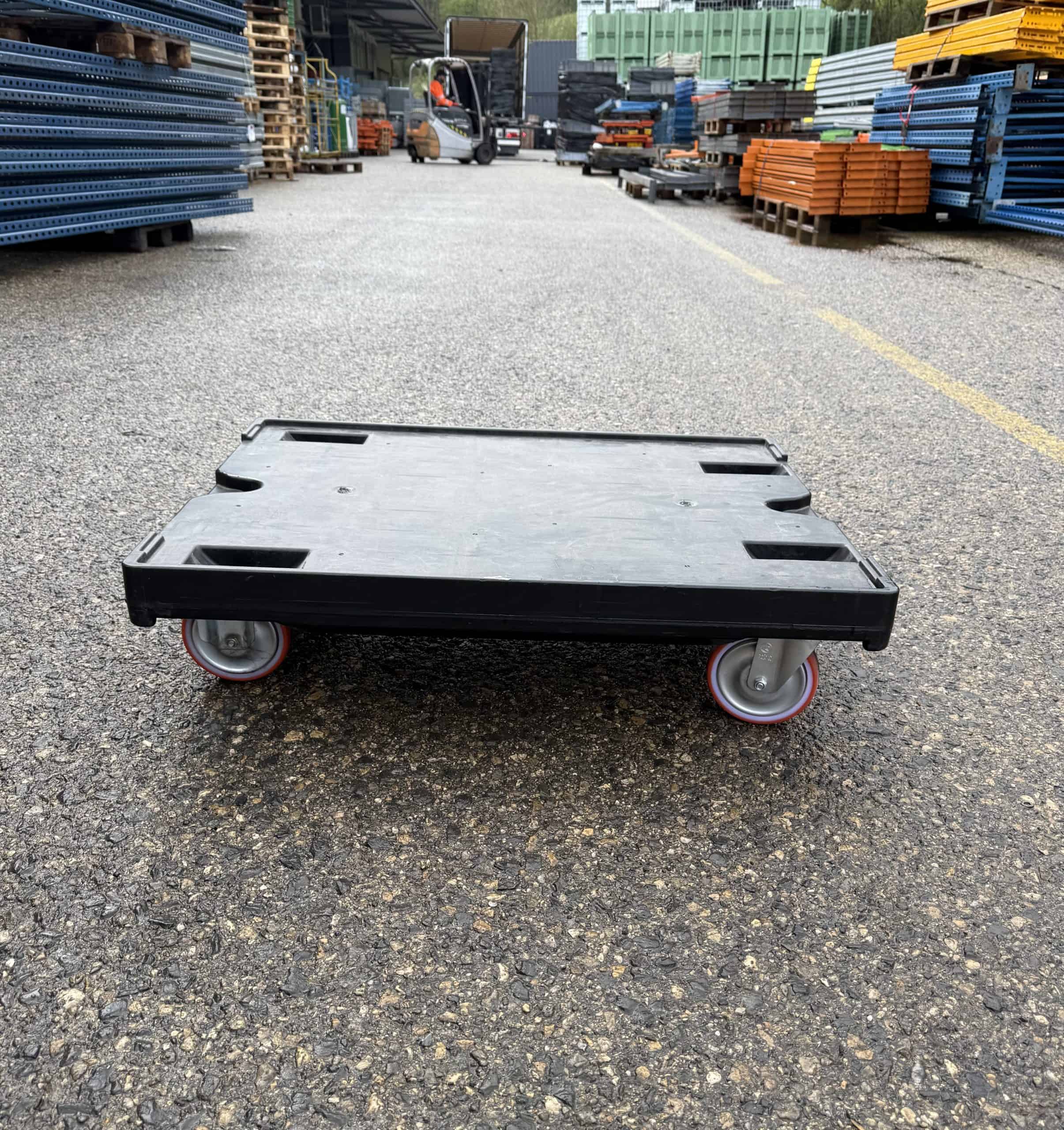 Chariot plastique noir d’occasion, idéal pour le transport léger et la manutention rapide en atelier, bureau ou magasin. Compact et maniable, il est équipé de roues pivotantes pour une grande facilité de déplacement dans tous types d’espaces.