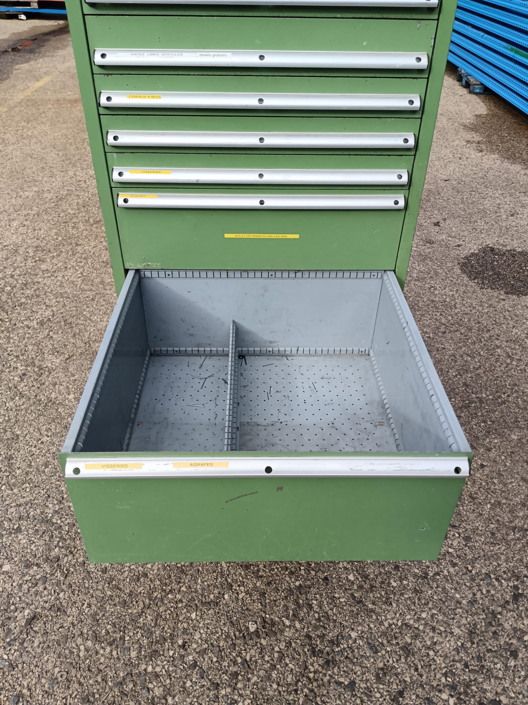 Cette layette Lista d’occasion est une armoire de rangement hautement fonctionnelle, conçue pour une utilisation professionnelle dans les ateliers, usines ou espaces techniques. Avec ses 10 tiroirs spacieux et son format vertical, elle permet une organisation optimale sur une surface au sol réduite.