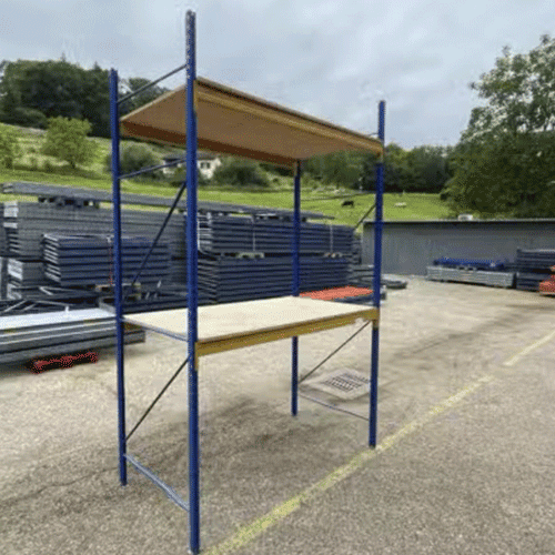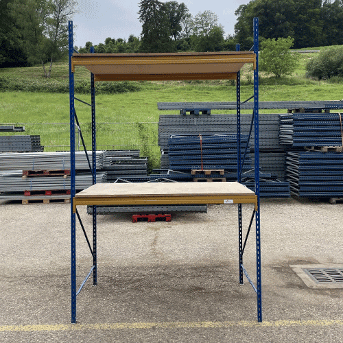 Lot N°10 Rack à palettes Eurostock bleu – 2 échelles, 4 traverses, 2 plateaux bois, occasion