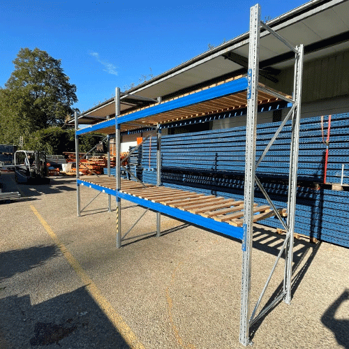 Lot N°14 Rack à palettes Armes avec plateaux bois ajourés – 3 échelles, 8 traverses – Occasion