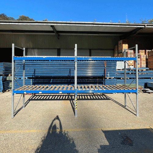 Le lot N°14 de racks à palettes Armes avec plateaux bois d’occasion est une solution robuste et modulable pour optimiser le stockage vertical. Composé de 3 échelles de 300 cm et de 8 traverses de 270 cm, ce rack est équipé de 8 plateaux en bois ajourés de 133 x 110 cm, offrant une surface de stockage solide et ventilée. Avec une hauteur de 300 cm et 3 niveaux de rangement (sol + 2), il permet une organisation efficace et un gain d’espace maximal. La modularité est renforcée grâce à la possibilité d’ajouter des rallonges, échelles, traverses et plateaux selon vos besoins.