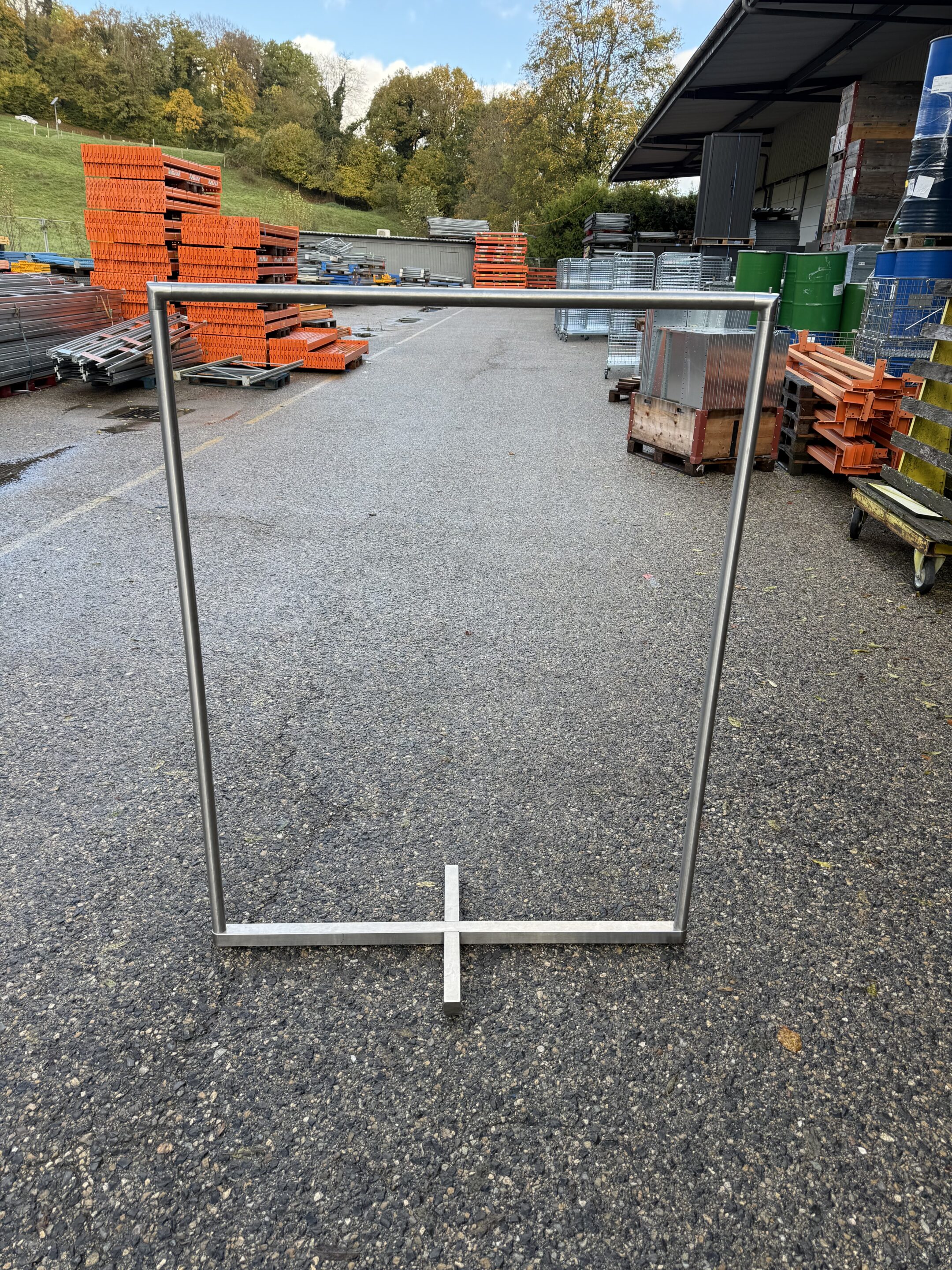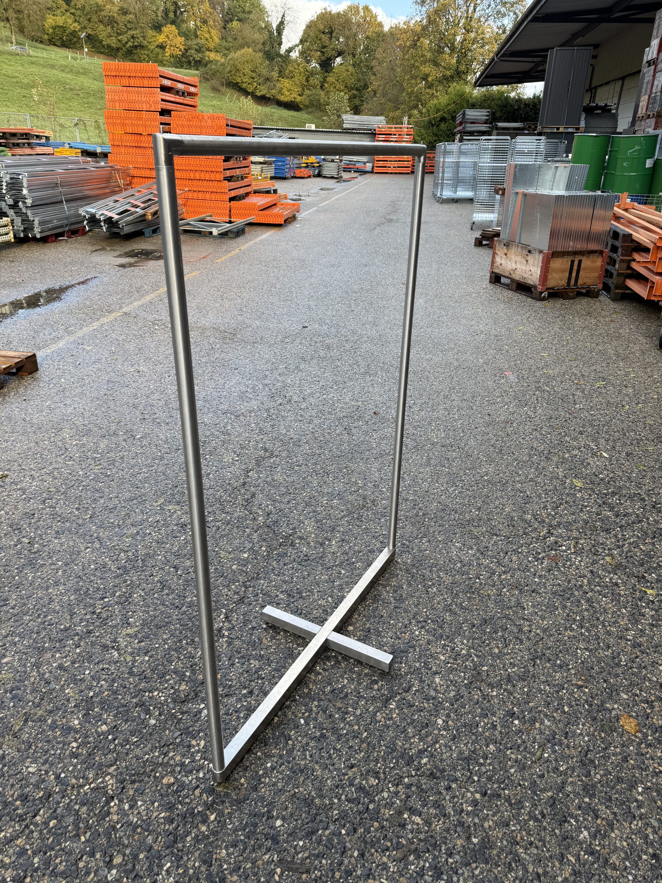 Ce stender métallique gris est un support pratique et solide pour suspendre, organiser ou exposer vos vêtements. Sa structure robuste en métal garantit stabilité et durabilité, que ce soit pour une utilisation en boutique, showroom, réserve ou même à la maison.